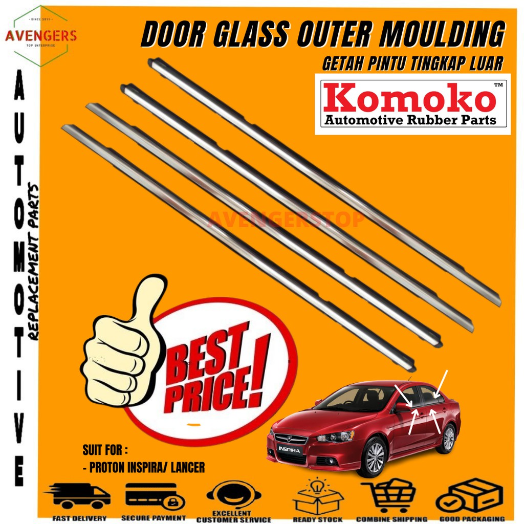 Proton Inspira Lancer Door Glass Outer Moulding Getah Luar Cermin Tingkap 100 Original Komoko High Quality Chrome Shopee Malaysia